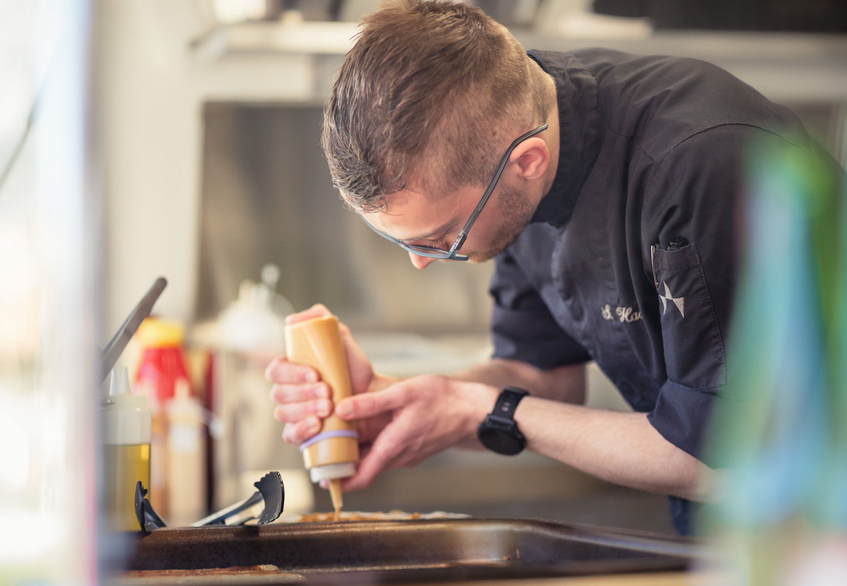 Mein Name ist Sebastian Haas, ich bin 26 Jahre alt und lebe am wunderschönen Wolfgangsee. Schon früh entdeckte ich meine Leidenschaft für das Kochen und konnte über die Jahre wertvolle Erfahrungen in der gehobenen Gastronomie sammeln. Nach meiner Lehre zum Koch arbeitete ich sechs Saisonen am Arlberg, darunter auch als Küchenchef. Zudem konnte ich als Souschef in St. Wolfgang meine Führungskompetenzen weiter ausbauen. Neben meiner Arbeit in der klassischen Gastronomie hatte ich die Chance, mein Können bei besonderen Events wie dem Oktoberfest, einer Messe in der Schweiz und sogar bei der Formel 1 unter Beweis stellen. Diese Erfahrungen haben mich geprägt und mir gezeigt, dass ich meine eigene kulinarische Vision verwirklichen möchte.